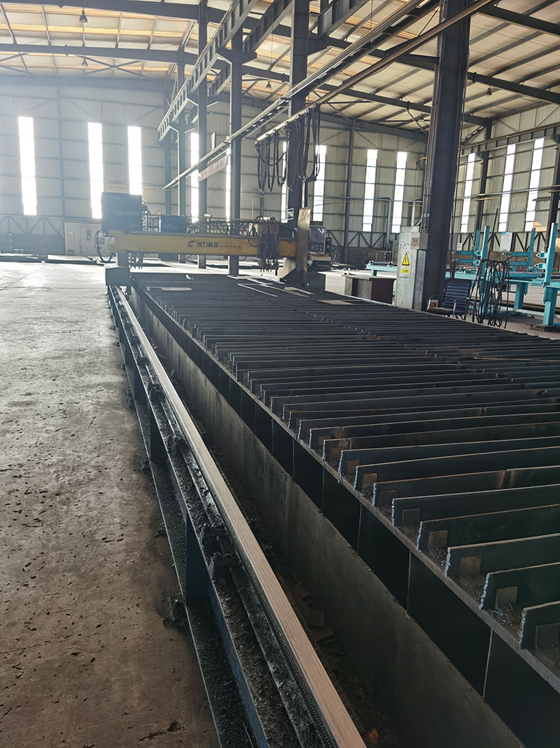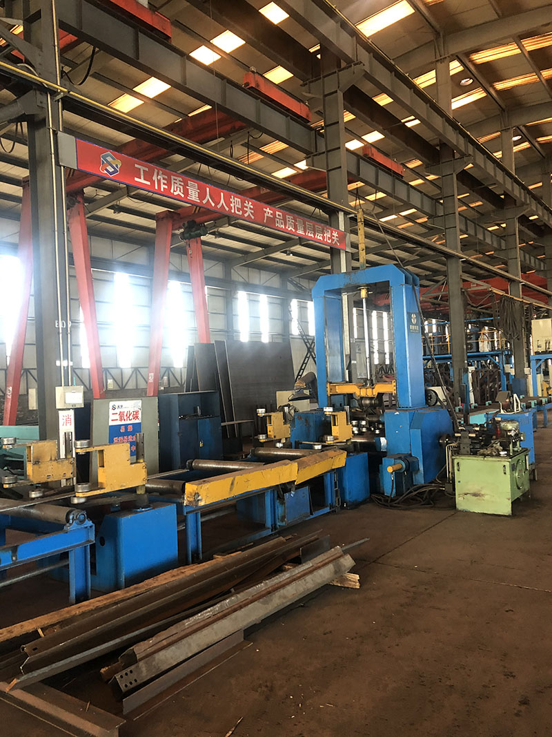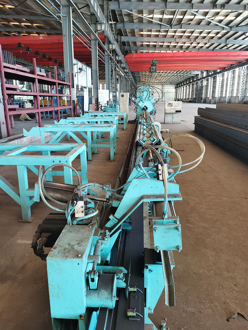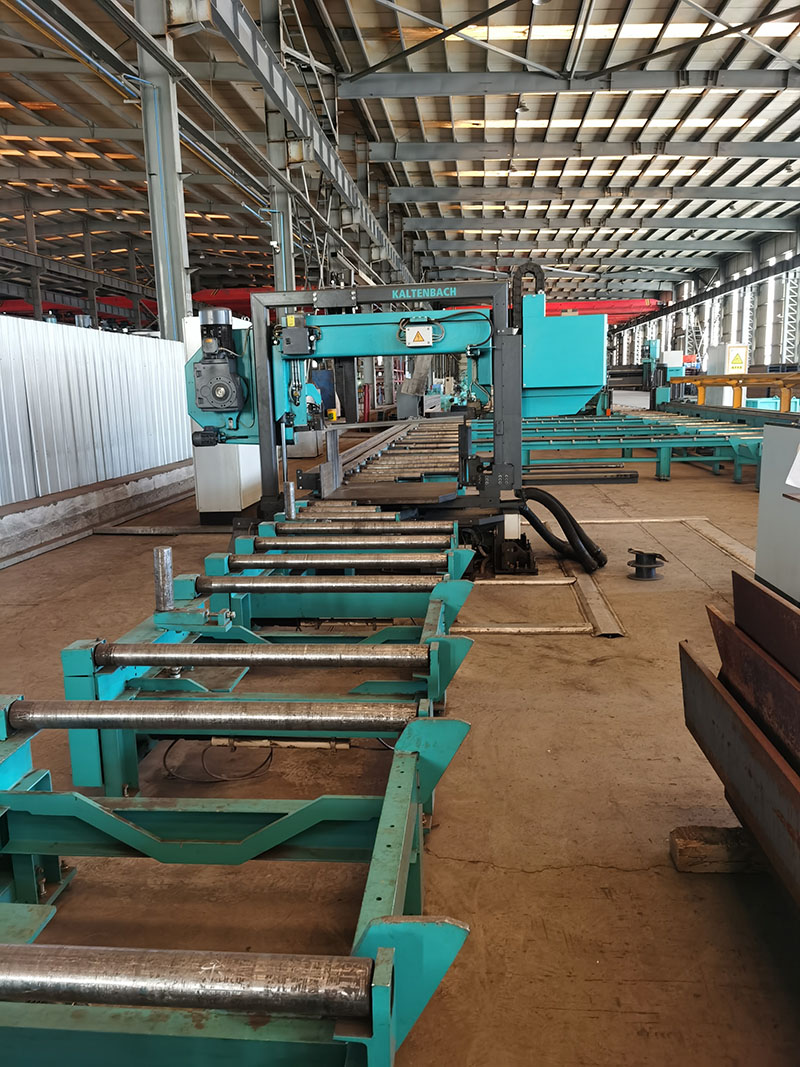 配有德國卡巴赫高速鋸床、三維鉆、鉆鋸一體生產(chǎn)線,德國KISTLER組、焊、矯一體機,大幅面激光切割機、數(shù)控火焰切割機、等離子切割機、組立機、龍門式埋弧焊機、矯正機、全自動6米折彎機、剪板機、搖臂鉆、數(shù)控相貫線切割機、型材切割機、電渣焊機、拋丸機等設備構成的鋼結構件生產(chǎn)線,并配有其它全自動數(shù)字化數(shù)控鉆床,以及焊機、起重設備等配套輔助設備,C型鋼成型設備數(shù)臺,鋼構件加工年生產(chǎn)能力3萬噸。