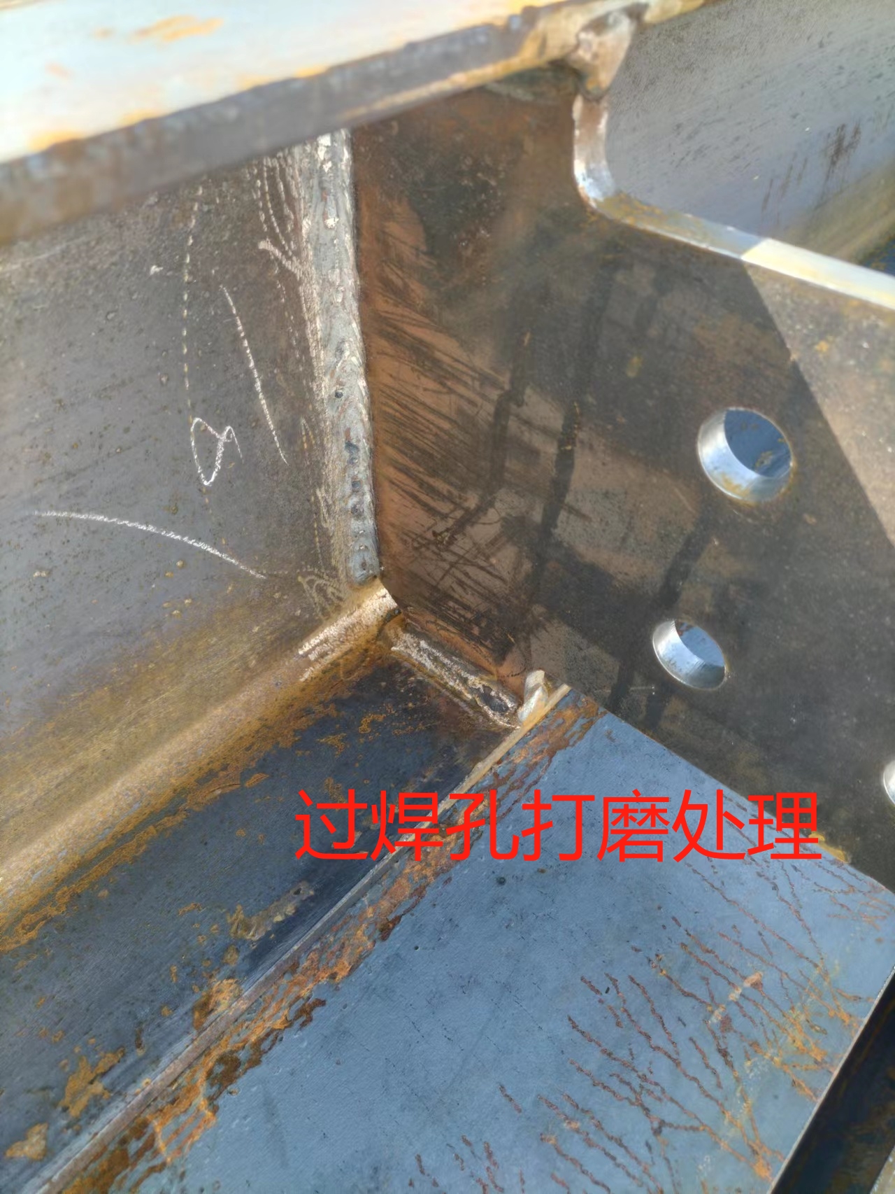 此加工構(gòu)件客戶提出了極為嚴(yán)格生產(chǎn)要求,鉚焊工藝標(biāo)準(zhǔn)很高,清渣打磨要做到干凈美觀,第三方探傷機(jī)構(gòu)要求每根構(gòu)件,每道焊縫進(jìn)行檢測(cè)。