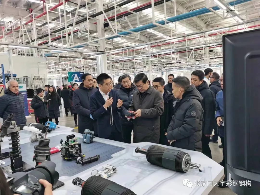 2023年11月17日由張家口天宇鋼結(jié)構(gòu)工程有限公司參與建設的省重點項目——京西智控張家口基地600萬支智能懸架工廠(一期)生產(chǎn)車間項目舉行了隆重的生產(chǎn)下線儀式,市領(lǐng)導及相關(guān)部門領(lǐng)導蒞臨現(xiàn)場參觀。天宇公司團隊高效協(xié)作,比工程要求工期提前完工,獲得了業(yè)主單位的高度贊揚!